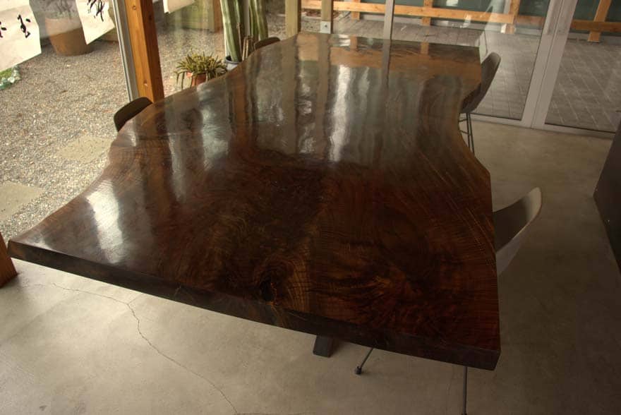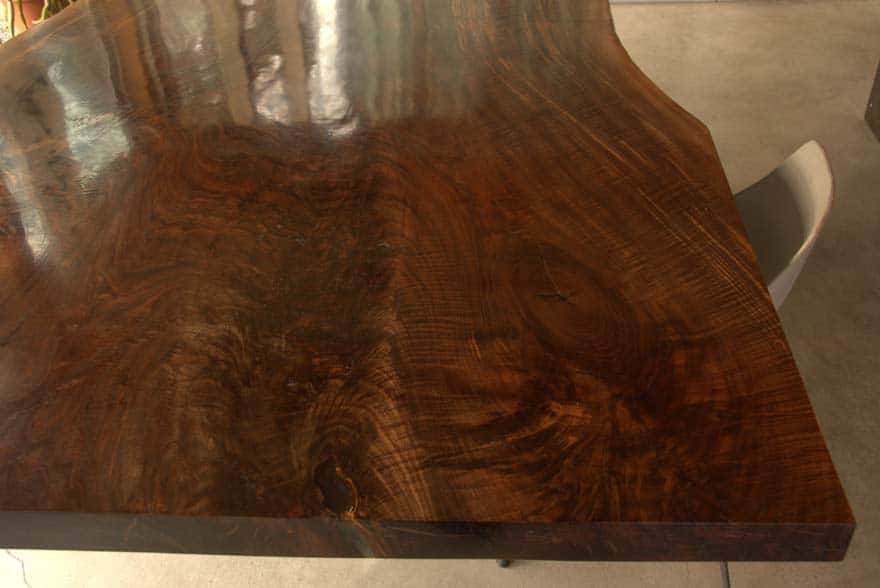 I’m not a woodworking or finishing expert and the table top if not “perfect”, it has some micro scratches, burnt sanding spots, cloudy epoxy, cupping that can be pointed out, but the final product is simply stunning! Because it was sanded to 12,000 grit with the table un-waxed I was able to get an oil to a mirror finish. Wax only enhances the depth of the view into the wood and adds a light shell of protection. By far the best-looking finish I’ve ever seen on a table to date with warm chocolate, coffee, red and golden hues with a very deep chatoyancy throughout. In direct sunlight it is magical! We’re looking forward to the centuries of joyful use of this my family and friends will get while utilizing this masterpiece of modern art. You too can create a table in a VOC ECO-friendly way.