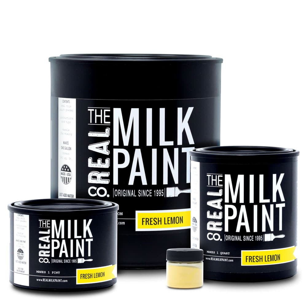 Bring some zing to walls or cabinets with Fresh Lemon Real Milk Paint. This zesty citrus shade offers an on-trend look for kitchens, and its pure, bright tones mesh seamlessly with soft or pale hues like Parchment or Honeysuckle while providing bold contrast to rich colors like Peacock or Lily Pad. Real Milk Paint is CPSC Compliant, making it safe for even the smallest ones in your life.