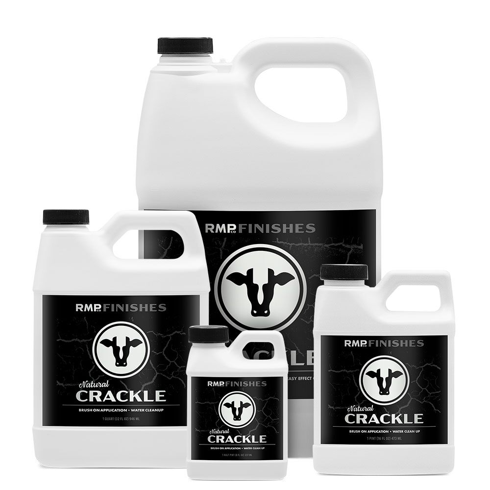 Natural Crackle Paint Finish by RMP Finishes is a collagen-based crackle medium that produces a stunning, weathered look without synthetic additives. It dries clear with a satin sheen and can be applied with a brush or roller between layers of Real Milk Paint® to create your desired effect.