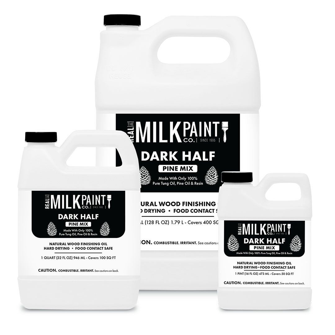 This is the same Dark Raw Tung Oil but we have mixed the Citrus Solvent in for you! The darkened color of Dark Half comes from mixing in a naturally occurring resinous hydrocarbon for color. The resin is non-carcinogenic and does not contain any PCBs. Dark Half by The Real Milk Paint Company is water and alkali resistant. It resists marring, penetrates well, is elastic, and is unlikely to check. Dark Half penetrates deep into the wood pores filling them up, consolidating the wood surface, and building a dark matte wood finish. It should be kept in an airtight container with minimum airspace.