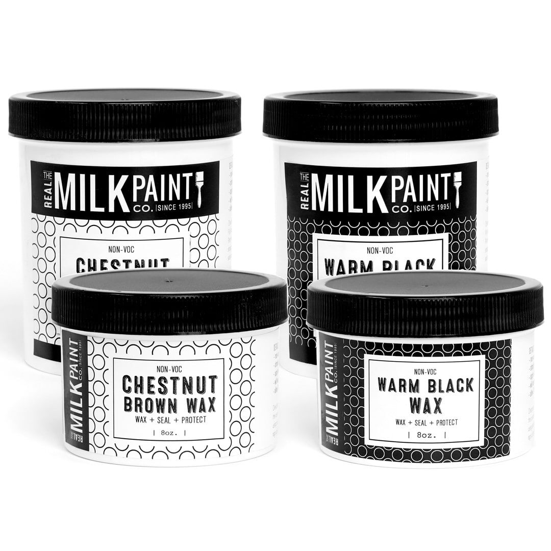 Zero VOC Chestnut Brown Wax by Real Milk Paint is a green product designed especially with you in mind. It is a soft creamy, multi-purpose wax that is easy to apply with a brush or rag and an excellent choice for your green home or green building. Brush in the corners and wipe off with a rag to create depth and contrast over milk paint, burnishing paste, or other finishes. Partial cure in 7-10 days, full cure in 15-30 days. This is a permanent, high-performance wax finish that will not melt or wipe off with cleaning products when dry. These non-toxic no VOC sealants are made with Walnut oil, carnauba wax, and pigments.